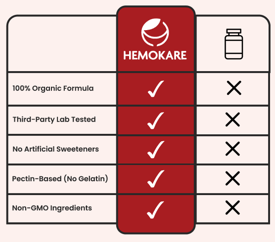 We offer a 30-day money-back guarantee on your first order. If Hemokare isn't right for you, reach out and we'll make it right. No hassle, no questions asked.
